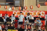 19日(日)には中郷地区納涼祭りがあり、吹奏楽部がオープニングで演奏しました。参加された方に喜ばれ好評でした。