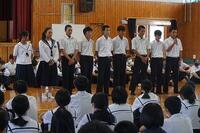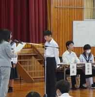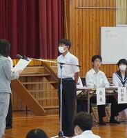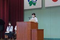 まず、校長先生が旧役員に感謝状を渡し、執行部全員と3年生の専門委員長、特別委員長があいさつをしました。