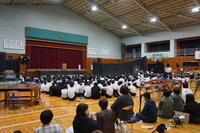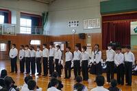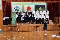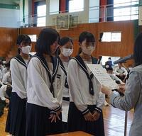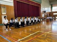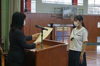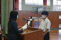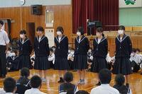始業式終了後に、NHK全国合唱コンクール奨励賞と都北地区中学1年生バスケットボール大会パート優勝の表彰を行いました。