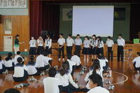 校長先生から、2学期は、たくさんある学校行事に全力で取り組む、授業と家庭学習に真剣に取り組み学力を高める努力をする、「礼を正し、場を清め、時を守る」という当たり前のことにきちんと取り組むように、話がありました。