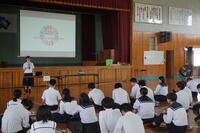 最後に、生徒指導の先生から「自転車のヘルメット着用等の交通安全」について、保健室の先生から「コロナウイルス感染症・熱中症対策」について、人権教育担当の先生からは「一人で悩みを抱え込まないように」とお話がありました。