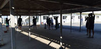 生徒22名、保護者13名の参加があり、自転車小屋のさび落としと塗装、雨樋の清掃や修理を行いました。