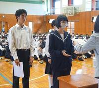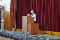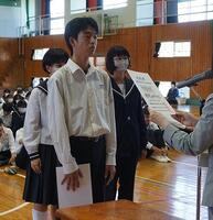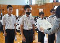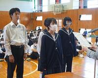 次に新役員に任命状を授与し、新生徒会長が力強いあいさつを行いました。