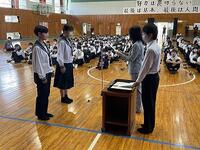 生徒会選挙を受けて新役員が決定し、解任式・任命式を行いました。