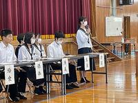 先週(9/14)、都北地区中学校英語暗唱・弁論大会に出場する2名の生徒の校内発表を行いました。