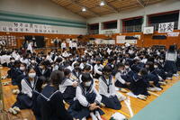 生徒会代表が激励のことばを送りました。選手のみなさんの活躍と健闘を祈ります。がんばってきてください!