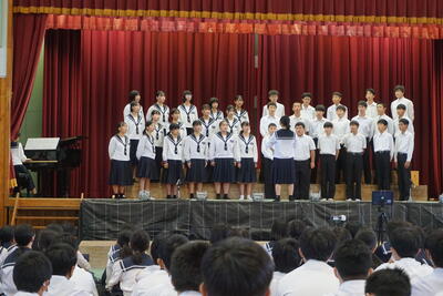 推戴式で披露できなかったため、一昨日、校長先生と先生代表が合唱2曲を聴きました。素敵なハーモニーと、全員が一つになって表現している素晴らしい姿にとても感動しました。