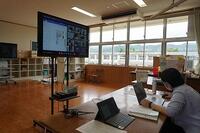 理科では、先生の質問にチャットでどんどん答えていました。国語では、自作のプレゼンシートを使って授業を進めるため、パソコンを2台つなげていました。