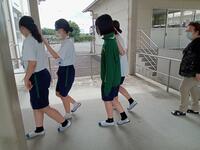 7月14日(金)に、3年生が福祉体験学習を行いました。社会福祉協議会の方や地域の方々に来ていただいて、車いす体験やアイマスク体験をしたり、福祉に関する講話を聴いたりして、障がいや高齢に伴う心身の変化、またその生活について考えました。