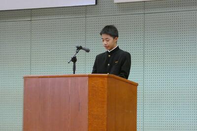 本日の第3学期始業式の様子です。各学年の代表が3学期の抱負を力強く述べました。