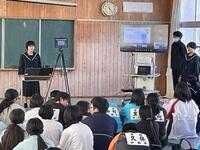 本日の3、4時間目に、中学1年生と各小学校をオンラインで繋ぎ、生徒会活動や部活動の紹介を行いました。1年生はこれまで、どうしたら小学生にわかりやすい説明になるか、しっかり伝わるか、知りたい情報はこれでよいかなど、各担当で話し合い、工夫を凝らしながら発表を作り上げてきました。