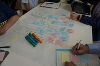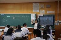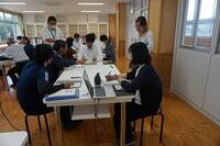 放課後は職員研修で、この研究授業の参考になるよかった点と課題について協議します。教育実習生も入って学年ごとに、活発に意見を交換しました。