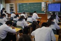 数学では、黒板ではなくタブレットに問題を書きながら解説していました。英語では、ふだんの授業のようにデジタル教科書を映し出していました。