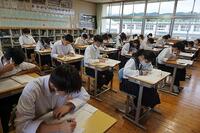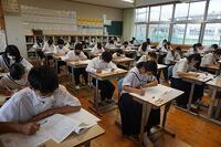 1学期学習内容の到達度を確認する大切なテストのため、どの学級もとても真剣に取り組んでいました。