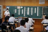 1年生の授業は、数学・理科・社会・英語です。1年生にとっては初めての期末テストになるので、丁寧に出題範囲を説明していました。