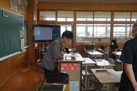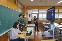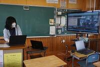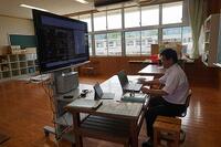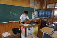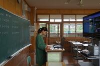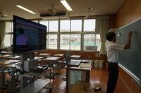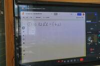 数学では、黒板ではなくタブレットに問題を書きながら解説していました。英語では、ふだんの授業のようにデジタル教科書を映し出していました。
