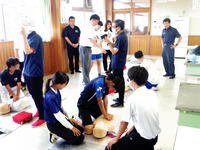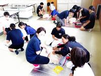 各部活動から代表生徒2名と職員が参加し、いざというときに心肺蘇生ができるように研修を行いました。