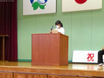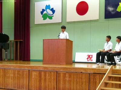 始業式では、各学年代表と生徒会の併せて4人が2学期の抱負を述べてくれました。