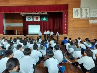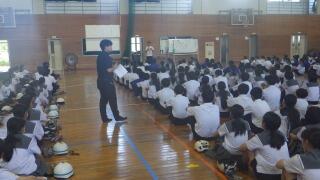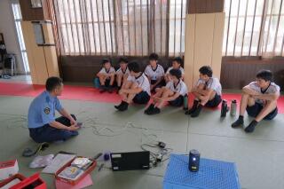 本日、11/7(金)の⑥校時に、都城警察署の協力のもと、避難訓練(不審者対応)が実施されました。昨年度は、やり直しをする場面もありましたが、今年度は全員が真剣に自分たちの安全のために高い意識で参加してくれました。また、職員向けの講習も実施していただき、短時間ながら質の高い訓練になりました。