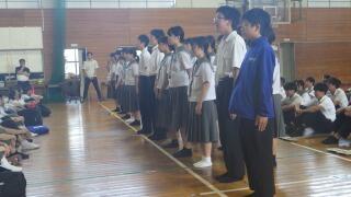 10/28(火)市役所 福祉課 藤崎さんより連絡がありました。文化発表会で、3の1の兒玉文さんが戦争をテーマに英語での発表をしてくれました。今回は、10/25(土)に、市のコニュニティーセンターの集会室での戦没者慰霊の式において、遺族代表スピーチ(今回は日本語)をしてくれました。都城市のHPでも、その様子を掲載しています。