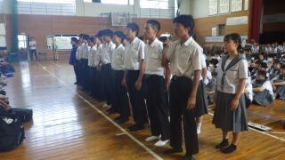 本日、10/29(水)の5校時、第39期生徒会役員退任式、第40期生徒会役員任命式が実施されました。つい先日までの大きな行事、日々の活動に尽力してくれた39期メンバーの皆さん、本当にありがとうございました。また、今回、全校、各学年から選出された第40期のメンバーの皆さん、皆さんの姿からあふれる意欲に大変頼もしく思います。今後とも、西中学校の発展のために力をかしてください!