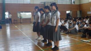 その後→7/5(土)ひなた宮崎県運動公園ソフトボール会場において、県大会が実施されました。高城中との合同チームで、本校の3年生が3人、1年生が1名参加しました。2-9で檍中に惜敗しましたが、いつも通り、少ない人数でも元気のよいプレーや応援で、最後まで戦い抜いてくれました。
