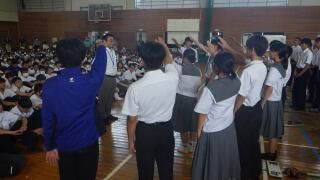 本日、11/11(火)②③校時に、じゃーんずΩさんに来校していただき、参加型の楽しい鑑賞教室を実施していただきました。アカペラでノリノリの楽曲を歌っていただき、本当に楽しい一時を与えていただきました。生徒たちは、パフォーマンスのクオリティーの高さに感動していました。何といっても迫力が違うと。これも日々の練習の賜物なのだと思います。本日は、朝、7:45~会場入りしていただき、準備・リハーサルをされていました。午後は、市内他校での講演に移動ということで、そのエネルギッシュな姿に刺激を受けた西中学校でした。本当にありがとうございました。