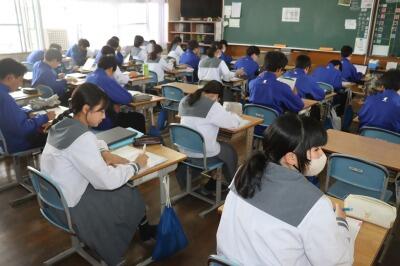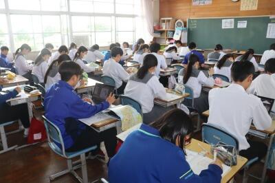 本日、3・13(木)の①校時、2の3にて学活の研究授業を実施しました。1年間を振り返ろうをテーマに、自身の成長や課題に気づき、1年後の理想の姿をイメージできるように、その実現のためにどのような行動をとるべきか具体的に考えさせ、3年生への進級につなげる目的で構成されていました。生徒は、積極的に発言し、しっかり自分と向き合うことができていました。