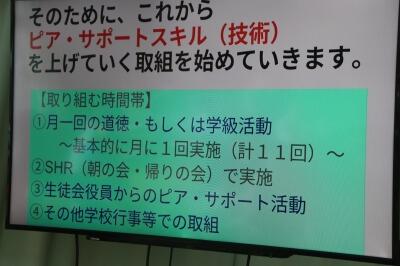 本日のさくら咲くタイム(生徒)の裏番組として、職員研修(ピア・サポート)を実施しました。ピア・サポート活動は、教師の指導・援助の下に、子どもたちが互いに思いやり、助け合い、支え合う人間関係を育むために行う活動であり、やがては思いやりのある学級や学校風土の醸成につながることを目的としています。生徒に還元するために、本校の職員も一生懸命学びの時間を持ちました。毎月、ピア・サポート活動を実践していきます。西中生の学校生活が充実するよう頑張っていきます。
