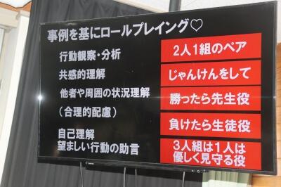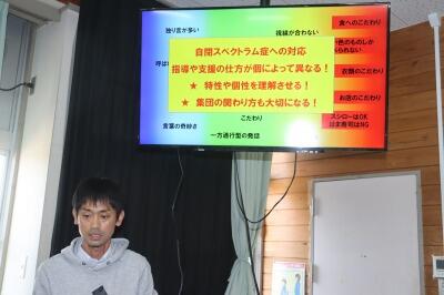 本日は、職員研修の時間において、特別支援教育の中の自閉症スペクトラムについて学びました。その特性を知り、分析の仕方、アプローチのあり方をロールプレイングを用いて実演・協議しました。短時間でしたが、まさに主体的・対話的で深い学びが実践できました。