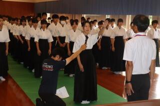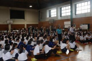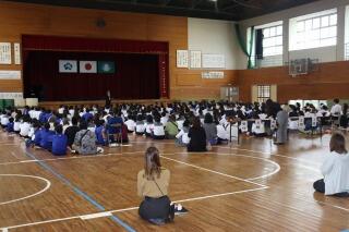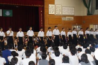 本日9/25(水)~9/27(金)の期間、本校でオーストラリアの中等学校生が来校し、日本文化体験や、本校の生徒との交流が行われます。以下は、歓迎式の様子です。
