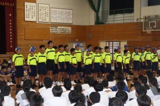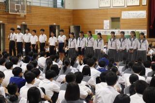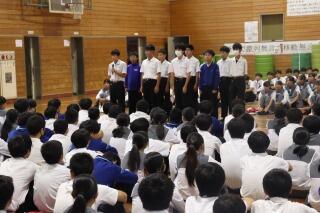 9/19(木)の6校時は、R6年度中体連地区秋季大会の選手推戴式が行われました。先輩方、各部の保護者の代表者の方々にも見守られながら、それぞれの競技から強い決意表明をしてもらいました。最後の夏に向けて目標を立てるきっかけとなる大会にしてほしいですね!頑張れ!西中、部活動生!!!