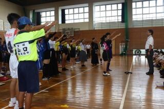 9/23(月)~早水体育文化センターにて、男女バスケットボール、剣道競技が実施されました。剣道部は新コーチもお迎えし、この新人戦に臨みました。全員、普段にも増して、凜々しい雰囲気で頑張っていました。個人戦は惜敗でしたが、女子団体戦が県大会に出場します。男女バスケットボール部も、監督、ベンチも含めた全力プレーで頑張ってくれました!大会2日目につながっています。なお、後援会はもちろん、先輩方、友人、先生方と多数の熱い応援も飛び交い、会場は熱気に包まれていました。剣道競技では、3年生が補助員として活動してくれていました。