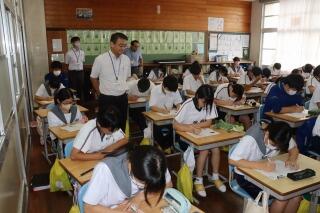 本日9/25(水)に、第1回の西中オープンスクールディを実施しました。保護者や地域の方々に学校に来ていただき、本校の素の状態を見て、アドバイスいただいたり応援をいただくことを目的としています。生徒も普段より少し張り切っていました。アンケートで回収したご意見を、西中の教育活動改善に生かしていきます。今後も、月1回のペースで実施します。今回は、PTA常任委員会、各学級の役員、学校運営協議会、民生委員、親父っどんの会の皆様、西小、明和小、西高校の先生方に来ていただきました。今後、少しずつ枠を広げていく計画です。皆様、ぜひお力をお貸しください!