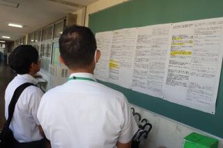 大きな行事も終わり、3年生は自分の進路実現に向けて、今まで以上に本気モードになってきました。本日は、入試・進学等の将来の自己実現に向けての詳細な情報を生徒・保護者で確認してもらうために、⑤⑥校時を使って進学説明会を実施しました。たくさんの保護者に来ていただき、3年生も気合いが入った顔つきになったように感じます。