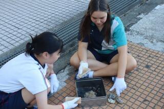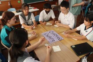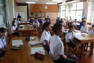 本日9/26(木)6校時は、都城市役所のサポートで、1の1の皆さんとオーストラリア中等学校生の皆さんで、一緒に体験活動を行いました。まず、前半は「火起こし体験」、後半は「昔のお金づくり」をしました。全員、目を輝かせて取り組んでいました。それぞれ、大昔にタイムスリップした気分だったようです。よい経験ができましたね!