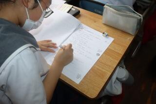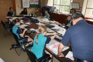 9/25(水)2校時、本校に来られている新盛支援員のご指導で、書道体験をしてもらいました。はじめて筆を持ったとは思えない実力にびっくりしました。ご指導いただいた新盛支援員、案内、書道道具を提供してくれたホストファミリーの生徒の皆さん、通訳等でお世話になった英語科の先生方、本当にご協力ありがとうございました。