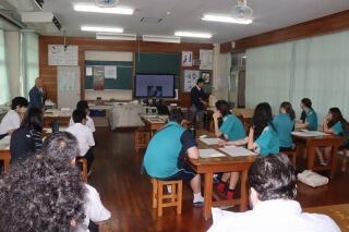 本日9/26(木)、5校時には、1年1組といっしょに都城市役所のサポートを受けて、ハロー元気講座で都城の歴史についての講座でした。土器の見学や、鎧、日本刀、雪舟の掛け軸などの説明、見学をしました。日本独特の文化に触れて、1の1の皆さんも、オーストラリア中等学校生の皆さんも、深い学びができました。以下は、その様子の写真です。
