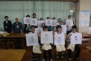 本日9/25(水)の5・6校時は、10組の生徒と一緒に、染め物体験をしてもらいました。宮崎県職業能力開発協会、きぬたやさんのご協力のもと、ハンカチ・エコバックの染色をしてもらいました。全員、すばらしい作品をつくってくれました。引率の先生、ALTのポール先生、10組担任の宇治橋先生も参加してくださいました。
