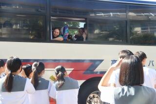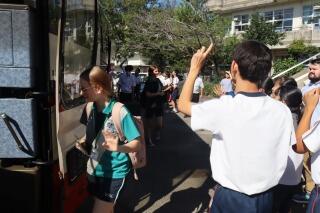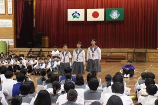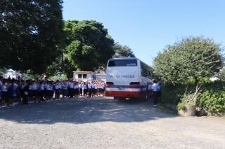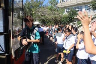 本日9/27(金)の1校時に、オーストラリア中等学校生の送別行事が行われました。児玉都城市教育長、都城市教委の宮崎課長をはじめ、市教委の皆様もお見送りに来ていただき、全校生徒・職員で送り出しをしました。お互いの代表生徒は相手の母国語であいさつをし、互いに感謝の念を述べていました。写真の「ずっと友達」の横断幕に象徴されるように、よい交流活動、異文化体験のできた3日間でした。いろいろとアドバイス、サポートをいただきました都城市教育委員会、ホストファミリーの皆様、先生方、西中の生徒の皆さん、本当にありがとうございました。