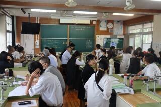 本日は、3年5組で英語の研究授業が実施されました。また、授業終了後は、南部教育事務所と小林中学校より来ていただいた先生方と授業研究会をもっていただき、様々なアドバイスをいただきました。西中学校の授業力向上だけでなく、県内の外国語指導をされる先生方への情報発信にもつなげることができれば幸いです。