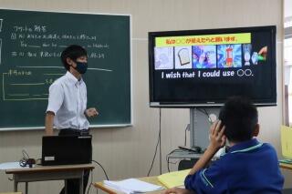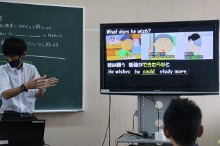本日、10/30(水)の3校時目に、3年10組で英語の研究授業がありました。みんな元気よく発音練習をしていました。TV画面では、サザエさん、ドラえもんをモチーフに日常会話の練習がなされ、見ているこっちも参加したくなる内容でした。少しだけ、会話練習に参加させていただきました。ありがとうございました。後半は、仮定法について学ぶ内容でした。これからも意欲的に学び、しっかり力をつけていってくださいね!