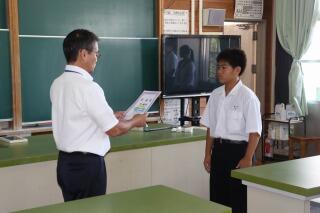 10.30(水)の5校時に、第38期生徒会役員解任式・第39回生徒会役員任命式が行われました。前生徒会役員への感謝状の贈呈、あいさつ、新生徒会役員への任命証の授与を行いました。生徒会役員の経験をプラスに生かし、これからもさらに新しいステージで頑張ろうという先輩方の決意を受け、新役員も意欲に満ちあふれる表情で式に参加していました。最後に、校長先生からも前役員へのお礼と新役員への激励の言葉をいただきました。これからの西中学校の生徒会の益々の活躍を期待しています。