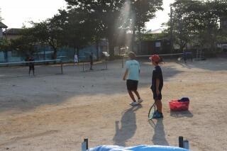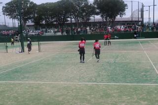 6番目に紹介するのは、男子ソフトテニス部です。部員数も他チームと比べて多く、マンモスチームです。短時間でも効率のよい練習を心がけています。自分が何のためにこの練習をするのかを意識し、日々頑張っています!