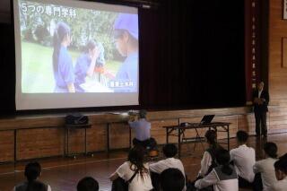 都城工業高等専門学校をはじめとして、4校来校され、先生方から、魅力ある、そして、特色ある学校の取組が紹介されました。これからも、3年生全員が、行きたい、なりたい、進路選択を、学校・保護者、そして、主役である生徒の皆さんとしっかり、考えていきたいと思います。