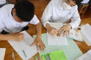 6/20(木)の3限目、2の1の数学の研究授業が実施されました。連立法的式を題材に、個人の活動、グループ活動、発表活動において、生徒が主体的に取り組む姿が印象的でした。6/21(金)の2限目は、1の5の国語の研究授業も行われました。主体的な学びができる生徒が増えているなと実感しました。