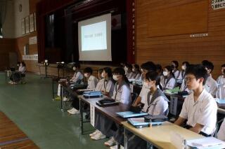 6/6(木)5校時は、3年生の3回目の高校説明会でした。都城農業高校をはじめとして、複数の学校の先生方に来校していただき、各校の特色・アピールポイントについてのご説明をいただき、貴重な進路選択の材料を得ることができました。