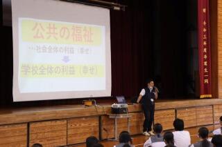 西中生の日々の生活の様子は、とても好感がもてます。しかしながら、残念ですが、一部に考えの浅い行動が見られたため、臨時の全校集会が行われました。