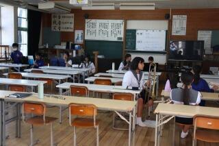 6/5(水)の4校時、2年5組で読み物資料「ジコチュウ」を使って、実習生による道徳の授業が行われました。2の5の生徒が、積極的に挙手をして発表する姿が印象的でした。実習の先生も、緊張しましたが、しっかり参加してくれる生徒に励まされましたとのことでした。