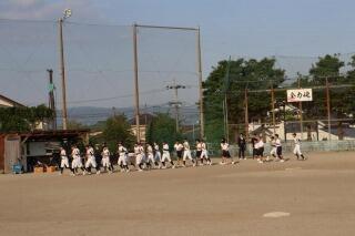 3番目に紹介するのは、野球部です。ビシッと整列し、大きなかけ声でランニングする姿が勇ましいです。毎日、泥だらけで白球を追いかけています。